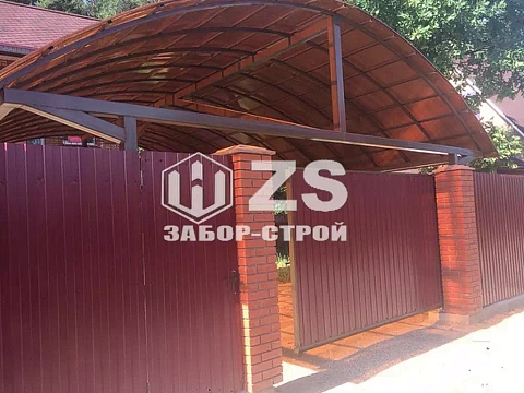 - ЗАБОР ИЗ ПРОФНАСТИЛА С КИРПИЧНЫМИ СТОЛБАМИ 11 СОТОК